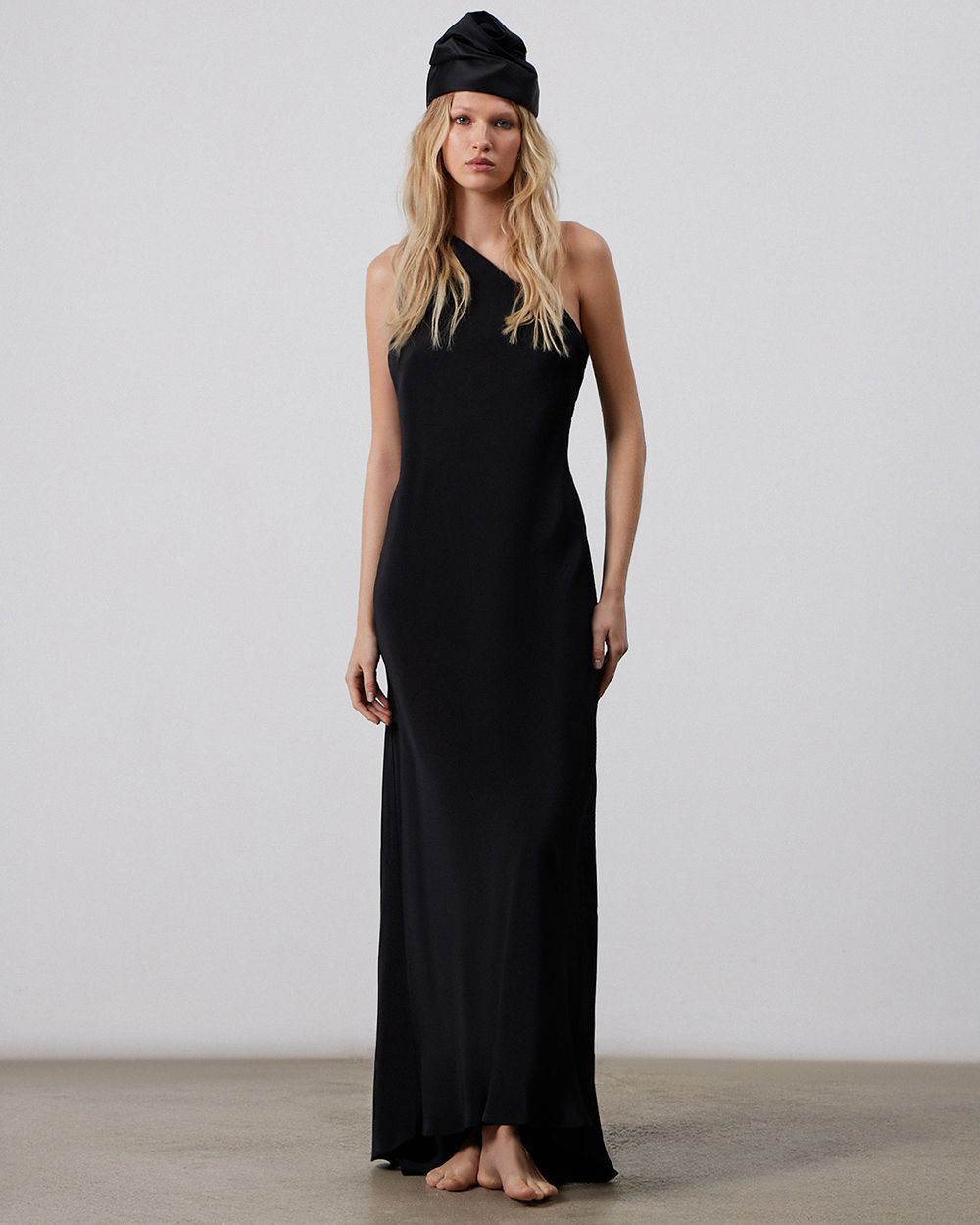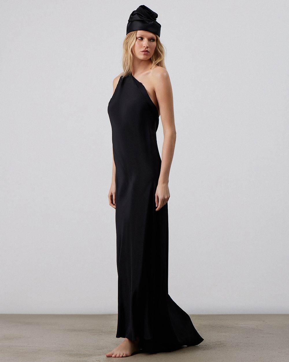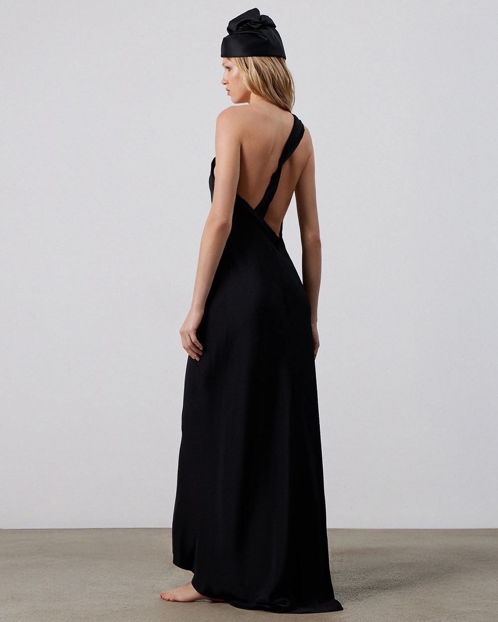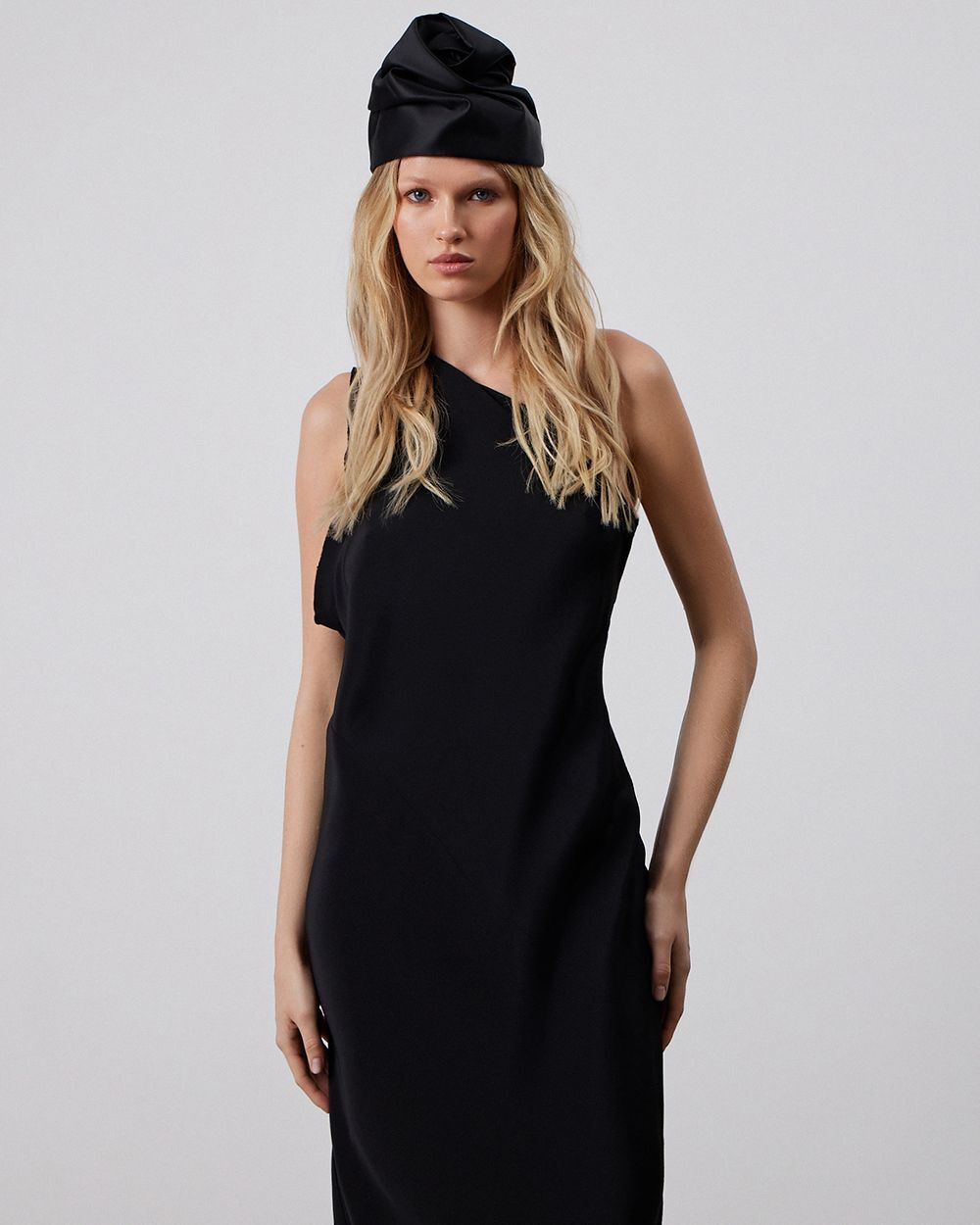 Высокая чёрная чалма с декоративными складками в виде цветка. Будучи компактной, она гармонично встроится в вечерний образ. Этот головной убор — результат кропотливого труда театральных мастеров, поэтому каждая единица имеет неповторимый облик. Основными материалами стали мягкий хлопок и шёлк, что обеспечивает комфортное прилегание и приятные ощущения в использовании.